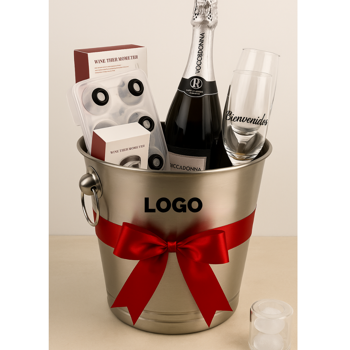 - 2 copas de espumante personalizadas con logo, mensaje o diseño