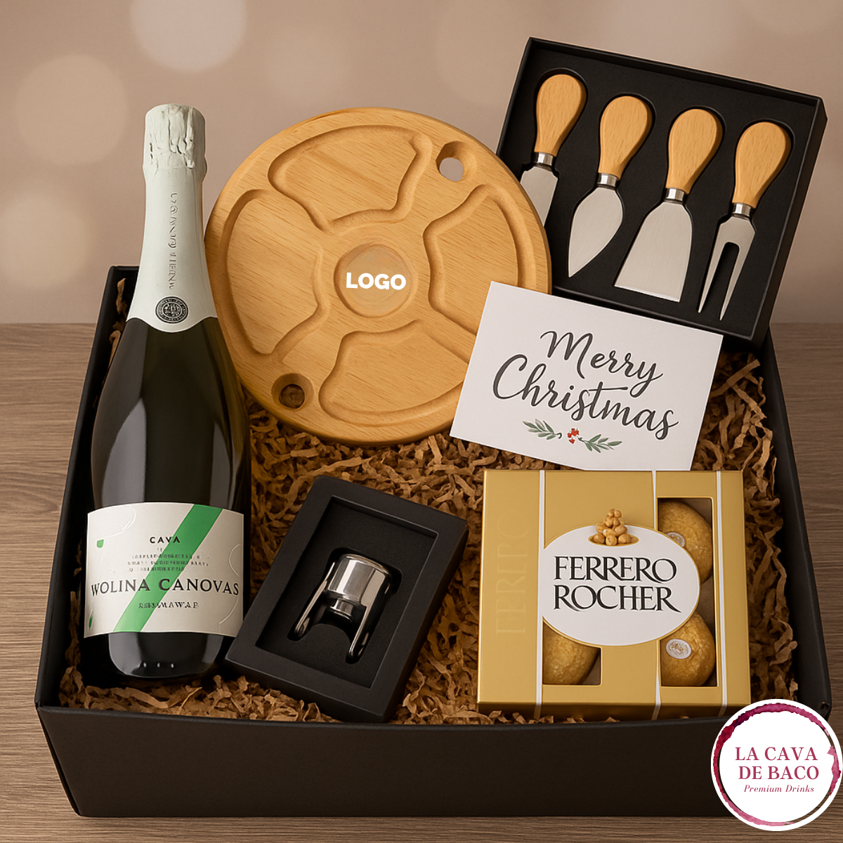 - 1 Set de Quesos cuchillos Premium con logo de la empresa en tapa