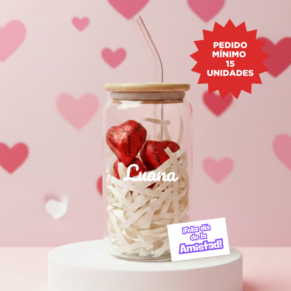 1 Paleta de caramelo en forma de corazón. Personalizado con sticker