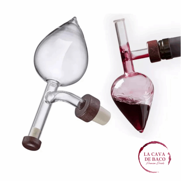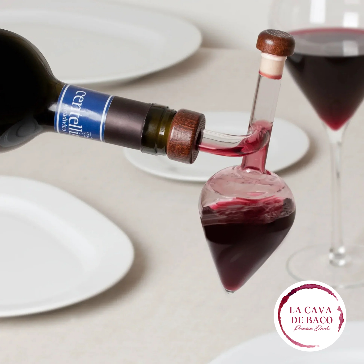 Este útil decantador y aireador de vino oxigena el vino al tiempo que lo sirve en la copa. Una nueva y exclusiva forma de decantar el vino por copa que mantiene y preserva las cualidades del vino.