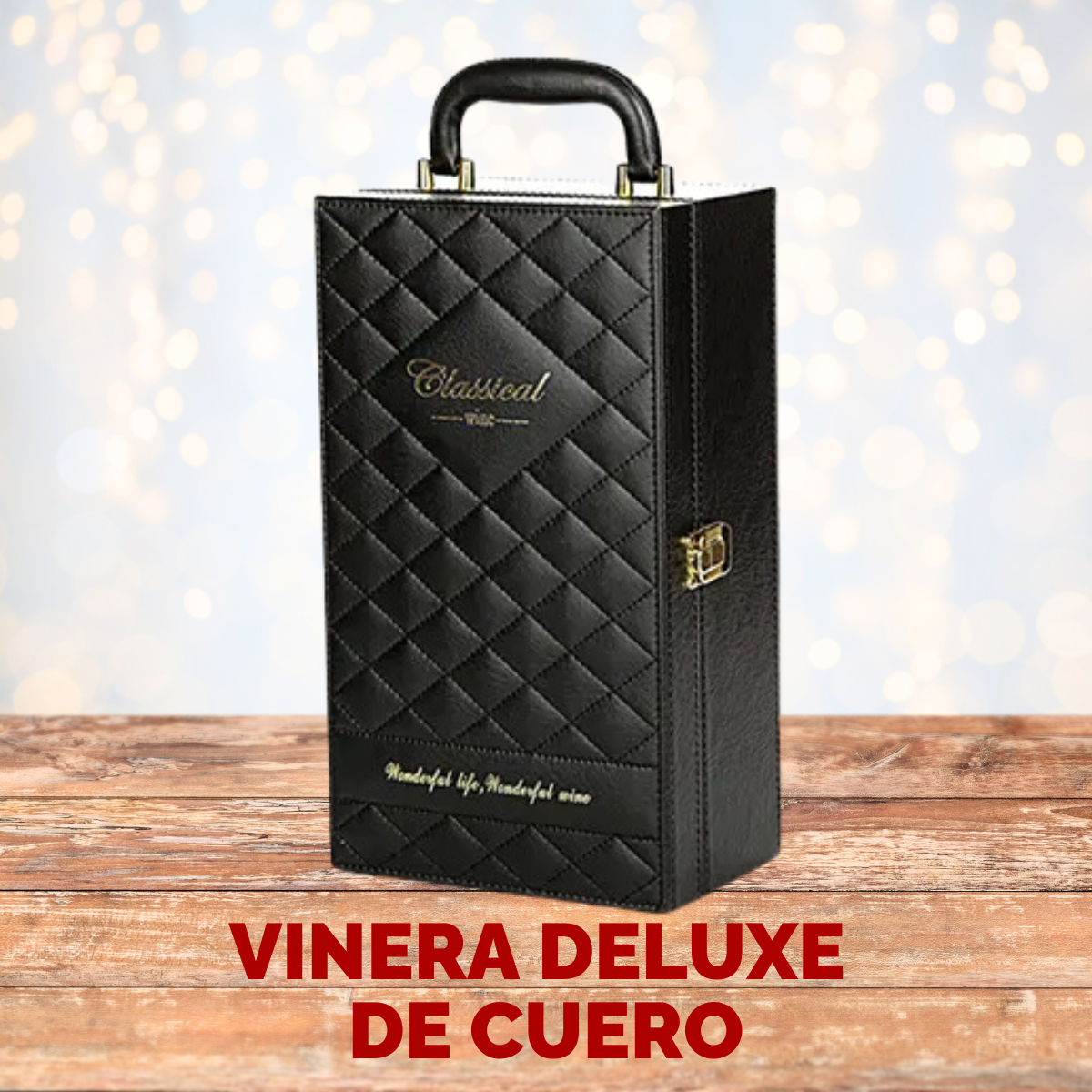 - Vinera de lujo. Apta para 2 vinos. Incluye accesorios de vino: cortagotas, vertedor, cortasellos y sacacorcho